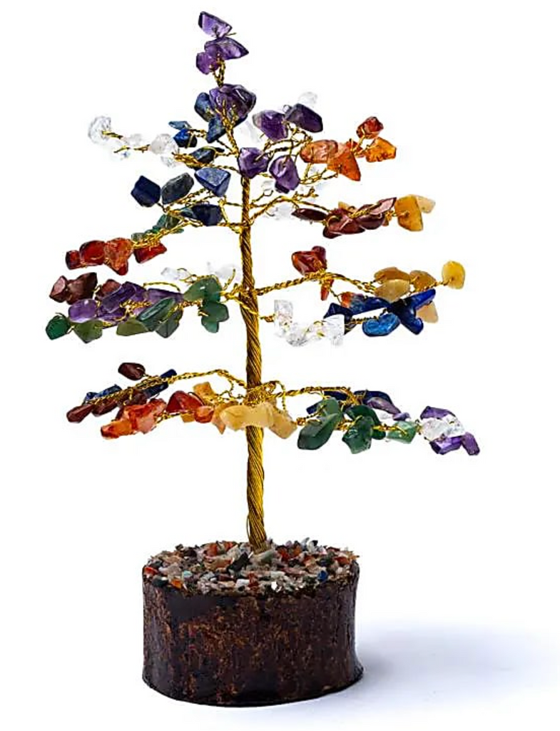 Sichere SSL-ZahlungDer 7-Chakra-Steinbaum ist ein dekoratives Wellness-Objekt, das die Energie Ihres Raumes harmonisiert. Geschmückt mit Edelsteinen, die den sieben Chakren entsprechen, vereint er Ästhetik und heilende Wirkung. Sein Sockel aus Neemholz, einem heiligen Baum des indischen Subkontinents, symbolisiert Heilung, Schutz und spirituelles Wachstum und verleiht diesem einzigartigen Objekt eine tiefgründige Dimension.