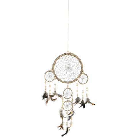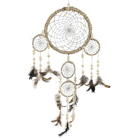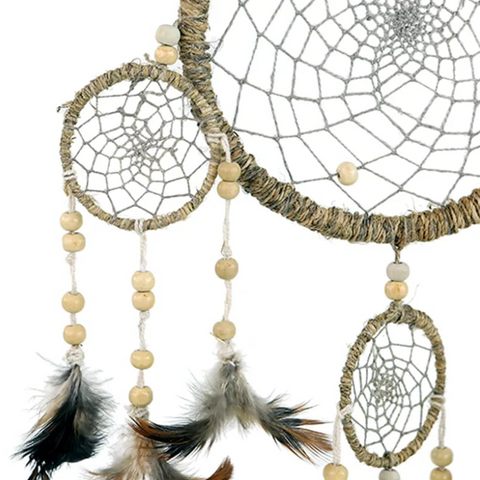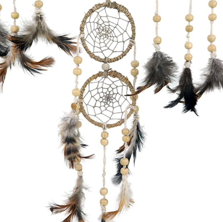 Traditionell besteht der Traumfänger aus einem hölzernen Kreis , der den Kreislauf des Lebens darstellt, und einem gewebten Netz , das schlechte Träume einfängt. Positive Träume hingegen gleiten sanft durch die Mitte und die Federn hinunter zum Schlafenden. Über dem Bett oder in der Nähe eines Fensters aufgehängt, wirkt er als spiritueller Filter und lässt nur wohlwollende Energien durch.