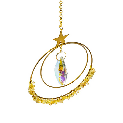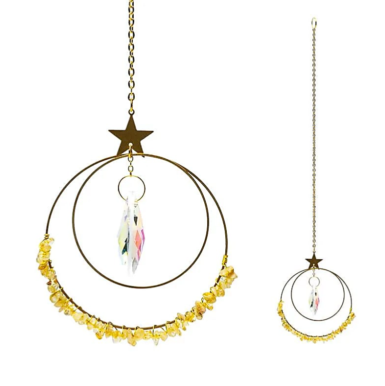 Gönnen Sie sich einen Lichtstrahl und positive Energie mit diesem Sonnenfänger in Sternform aus Kristall und Citrin , einem wahren Juwel, das Ihren Raum erhellt und harmonisiert!