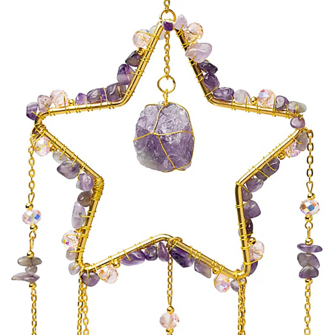 Lassen Sie mit diesem Sonnenfänger aus Kristall und Amethyst , einer Quelle positiver Energie und Schwingungsharmonie , Licht und Ruhe in Ihren Raum.