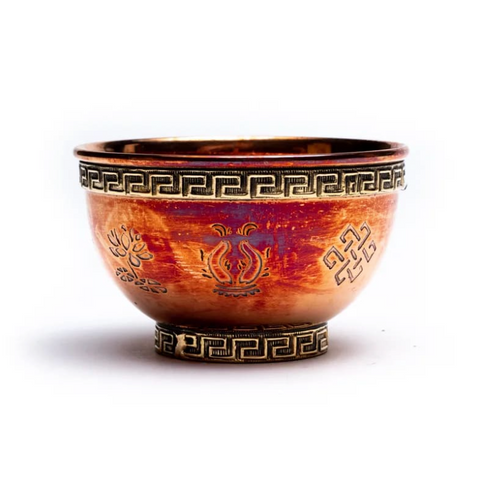 Die Opferschale wird in Ritualen verwendet, um Wasser, Blumen, Weihrauch, Edelsteine oder heilige Speisen aufzubewahren. Sie dient dazu, Gottheiten oder dem Universum Opfer darzubringen und symbolisiert Fülle und Dankbarkeit. Praktizierende stellen sie auf ihre Altäre, um sie zu reinigen und göttlichen Segen zu erbitten.