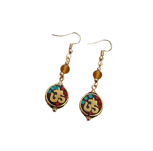 Ein spirituelles und energetisches Juwel : Diese Ohrringe vereinen die Energie von Om, Türkis, Koralle und Bernstein und sind ein wahres Schutzamulett .