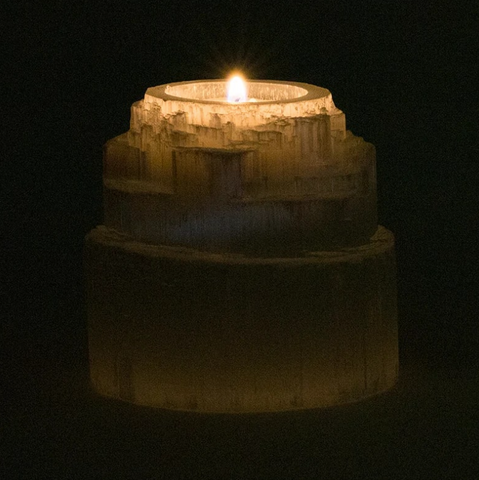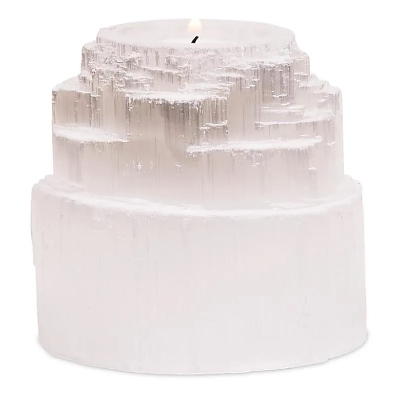 Der Kerzenhalter besteht aus Selenit und Satinspat , zwei Mineralien, die für ihre spirituellen und heilenden Eigenschaften bekannt sind und Klarheit und Harmonie in Ihr tägliches Leben bringen.