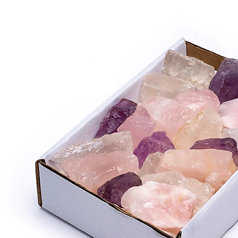 - Schachteln mit 3 Natursteinen: Amethyst, Rosenquarz und Bergkristall - Brasilien
