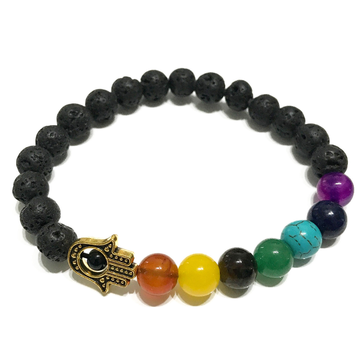 Entscheiden Sie sich für dieses 7-Chakra-Lavastein-Armband mit Hamsa-Amulett, um Energiebalance, Schutz und Glück in Ihr Leben einzuladen. Ein unverzichtbares spirituelles Juwel, um Ihre Verbindung zu positiven Energien zu stärken und Sie vor negativen äußeren Einflüssen zu schützen.