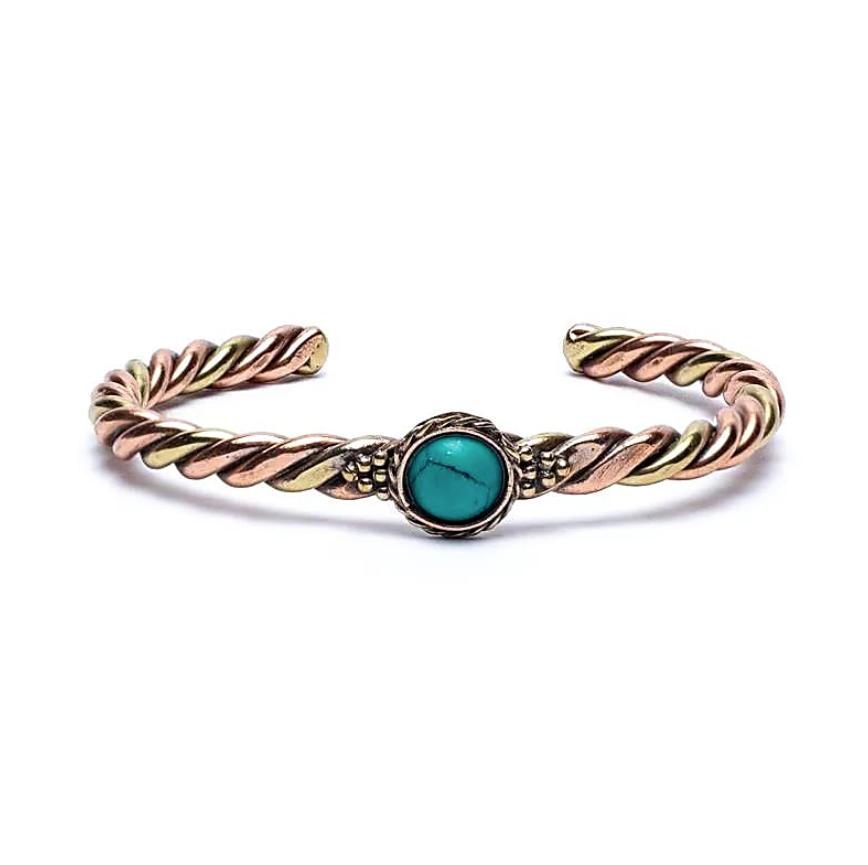 Legen Sie das schlichte türkisfarbene, gedrehte Kupferarmband jetzt in Ihren Einkaufswagen und genießen Sie seine vielen Vorteile, während Sie Ihrem Alltagsoutfit einen Hauch handgefertigter Eleganz verleihen!