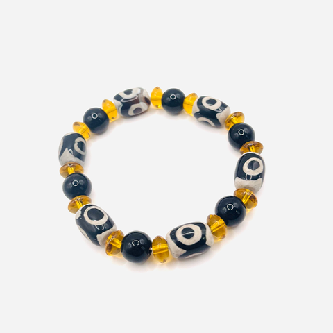 Sichere SSL-Zahlung Dieses dreiäugige Dzi-Armband „Reichtum“ verkörpert Weisheit und spirituellen Schutz und ist direkt von tibetisch-buddhistischen Traditionen inspiriert. Die dreiäugige Dzi-Perle ist ein kraftvolles Symbol für Buddhas Gebet und bringt seinem Träger Heilung, Wohlstand und Gleichgewicht zwischen Körper, Geist und Seele. Dieser Talisman, der in der tibetischen Kultur hochgeschätzt wird, dient als Brücke zwischen der materiellen und der spirituellen Welt.