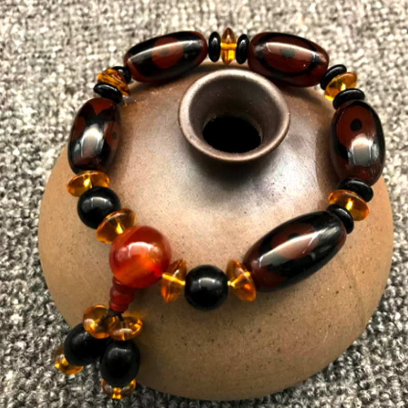 Dieses dreiäugige Dzi-Armband ist nicht nur ein ästhetisches Schmuckstück, sondern auch ein mit heiligen Symbolen beladener Talisman, der Heilung, Schutz und Wohlstand in Ihr Leben bringen kann.