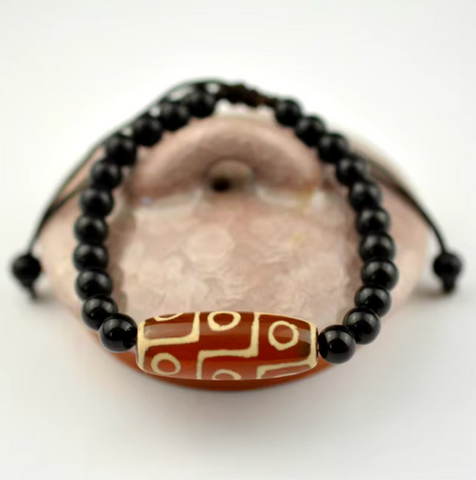 Dieses 9-äugige Dzi-Armband ist nicht nur ein ästhetisches Schmuckstück, sondern auch ein mit heiligen Symbolen beladener Talisman, der Heilung, Schutz und Wohlstand in Ihr Leben bringen kann.