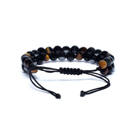 - Armband aus Hämatit, Obsidian und Tigerauge