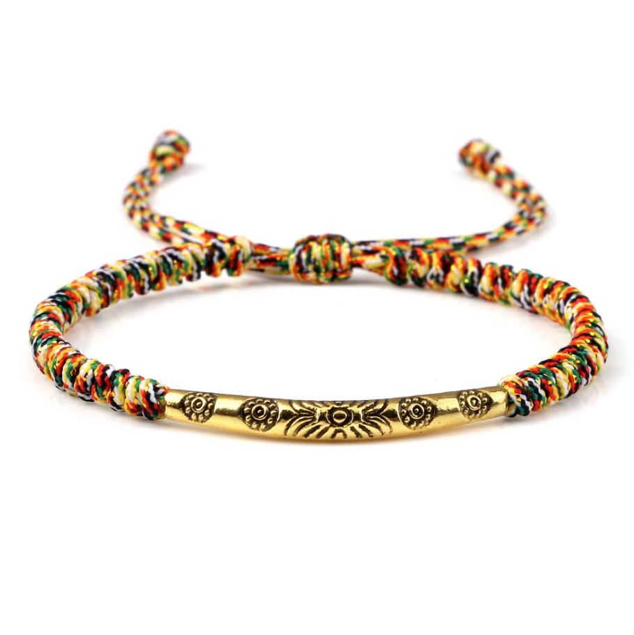 Verleihen Sie Ihrem Stil mit diesem handgewebten tibetisch-buddhistischen Armband Schutz, Glück und eine spirituelle Note. Ein zeitloses Schmuckstück voller Symbolik und positiver Energie, ideal für Liebhaber der buddhistischen und tibetischen Kultur.