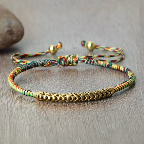 Verleihen Sie Ihrem Stil Schutz, Glück und eine spirituelle Note mit diesem handgewebten tibetisch-buddhistischen Armband. Ein zeitloses Juwel voller Symbolik und positiver Energie, ideal für Liebhaber der buddhistischen und tibetischen Kultur.
