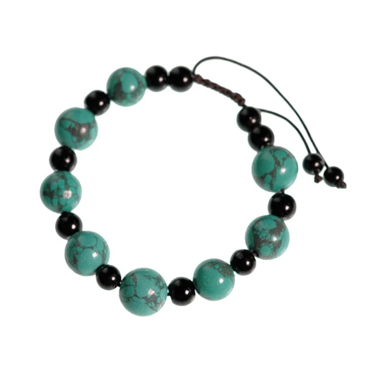 Die Kombination aus Türkis und schwarzem Achat verbindet himmlische und irdische Energie : ein ausgeglichener Fluss zwischen spirituellem Streben und Realitätsnähe. Sie ist die ideale Wahl für alle, die mit Klarheit, Kraft und Harmonie vorankommen möchten.