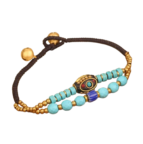 Sichere SSL-ZahlungDas Armband „Auge der Weisheit“ ist ein tibetisches, handgefertigtes Schmuckstück, das Spiritualität und Schutz ausstrahlt. Sein zentrales Medaillon stellt ein symbolisches Auge dar, einen mächtigen buddhistischen Talisman, der negative Energien abwehrt und die Intuition stärkt. Bestehend aus türkisfarbenen Perlen, vergoldetem Messing und einem Hauch von Karneol und Lapislazuli, soll dieses Armband Körper und Geist harmonisieren und gleichzeitig einen Hauch spiritueller Eleganz verleihen.