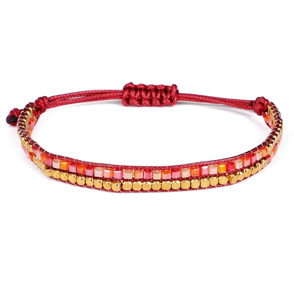 Handwerkskunst und Fachwissen : Das Handweben dieses Armbands macht es einzigartig, wobei jedes Stück ein Kunstwerk für sich ist. Es verkörpert die Geduld, Präzision und Liebe zum Detail, die für tibetische Kunsthandwerker charakteristisch sind.