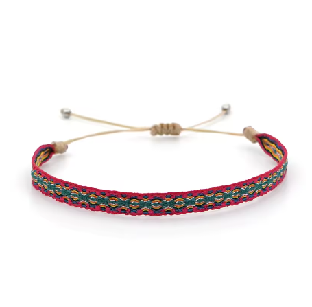 - Armband aus gewebtem Baumwollfaden : Dieses aus hochwertigem Baumwollfaden gewebte Armband symbolisiert Reinheit und Einfachheit. Sein traditionelles tibetisches Design erinnert an die Verbindung mit dem Universum und die Suche nach spiritueller Erleuchtung.