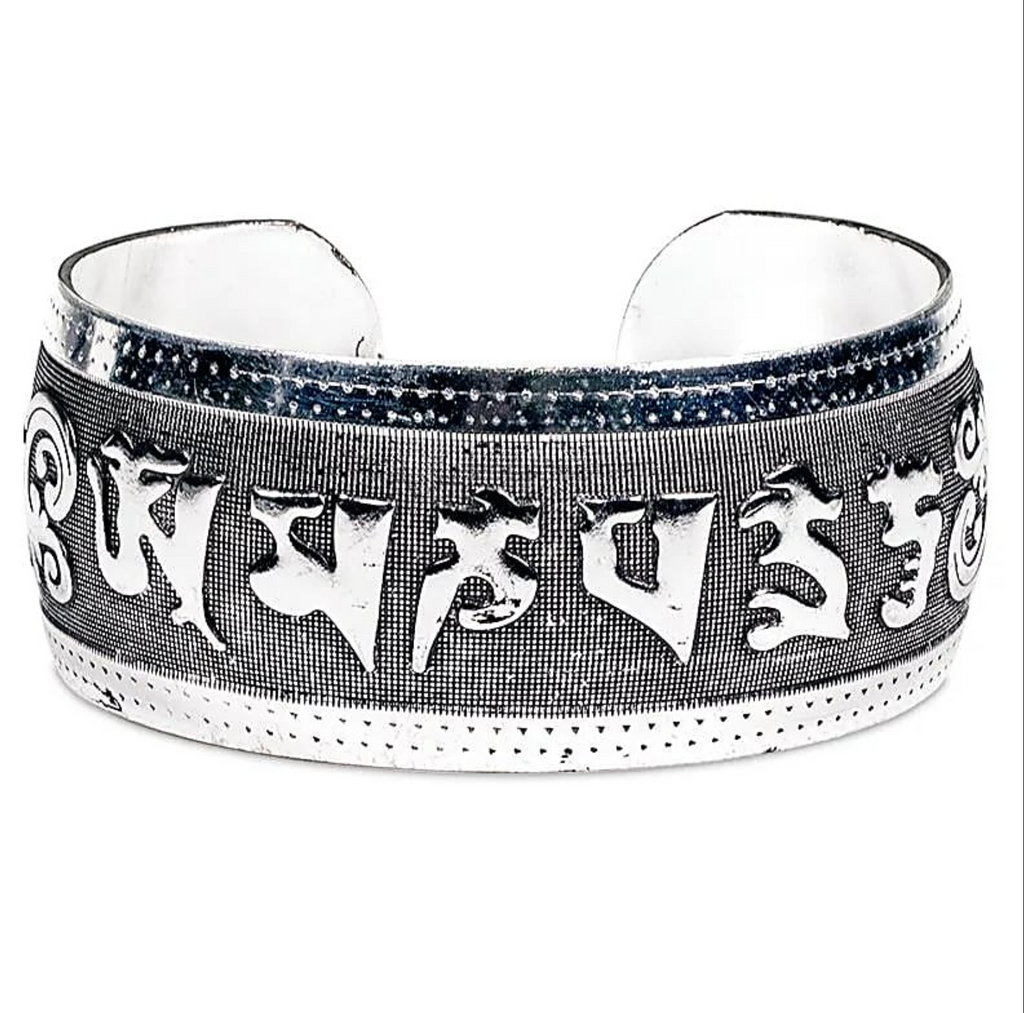 Dieses Armband stammt aus der angestammten Kultur der Miao, einer ethnischen Minderheit im Süden Chinas, die für ihre raffinierte Silberverarbeitung bekannt ist. Durch die Kombination dieser reichen Stammestradition mit tibetischen Mantras verkörpert dieses Juwel die Verschmelzung zweier Kulturen: den künstlerischen Ausdruck der Miao und die tiefe tibetische Spiritualität. Das auf dem Armband eingravierte Mantra „Om Mani Padme Hum“ ist eines der bekanntesten buddhistischen Gebete. Sie ruft das Mitgefühl und die Weisheit des Bodhisattva Avalokiteshvara an.