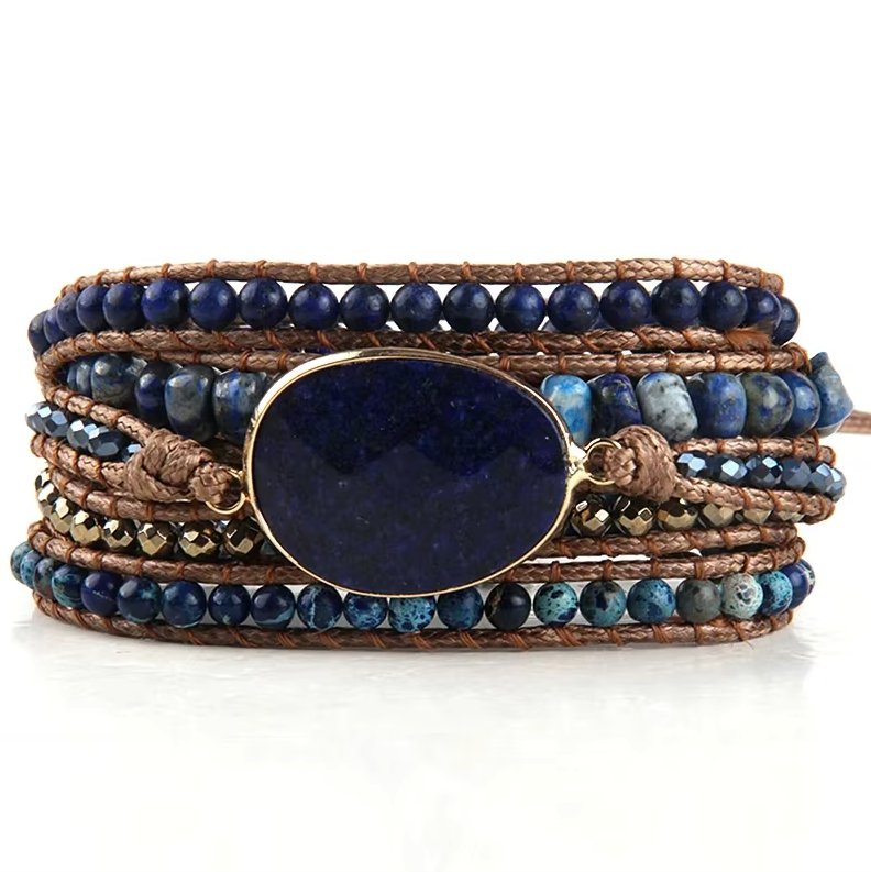 Ein tibetisches Wickelarmband ist eine besondere Art von Wickelarmband, das von der tibetischen Kultur und Tradition inspiriert ist. Diese Armbänder bestehen oft aus natürlichen Materialien wie Steinperlen, Holz, Metall und manchmal sogar Leder und sind so konzipiert, dass sie sich mehrmals um das Handgelenk wickeln lassen.