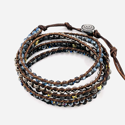 Ein tibetisches Wickelarmband ist eine spezielle Art von Wickelarmband, das von der tibetischen Kultur und Tradition inspiriert ist. Diese Armbänder werden oft aus natürlichen Materialien wie Steinperlen, Holz, Metall und manchmal sogar Leder hergestellt und sind so konzipiert, dass sie mehrmals um das Handgelenk gewickelt werden können.