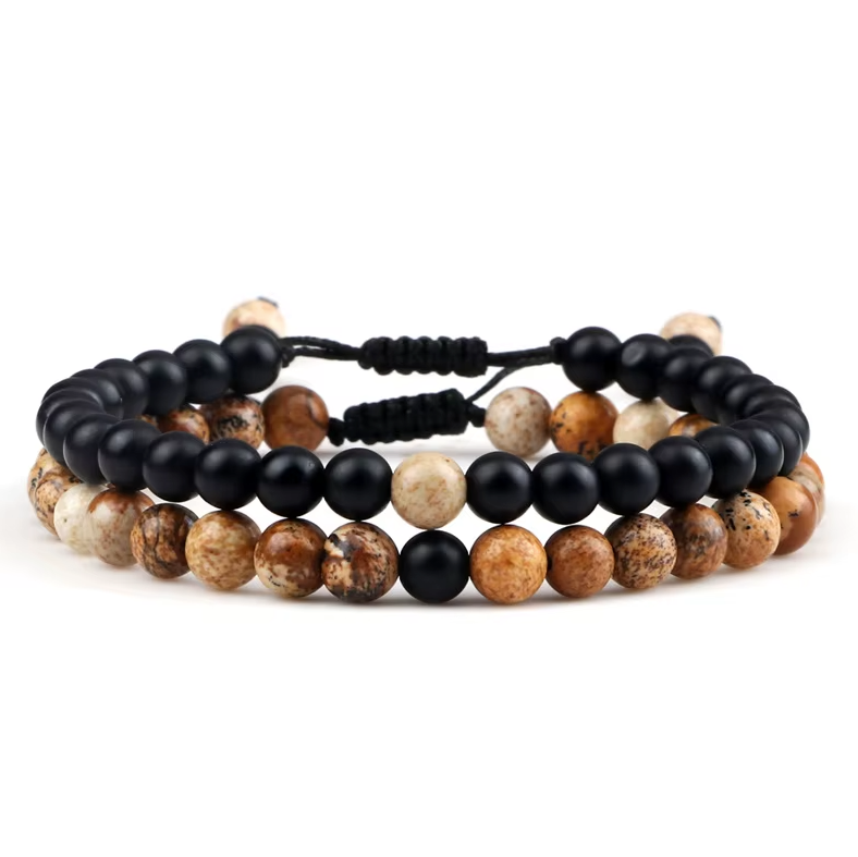 Dieses tibetische Duo-Armband – Lavastein und gebrochener Achat – vereint auf harmonische Weise die Kraft des Lavasteins und die einzigartige Schönheit des gebrochenen Achats. Dieses von talentierten Kunsthandwerkern sorgfältig gefertigte Armband ist eine perfekte Mischung aus Tradition und Moderne und bietet sowohl wohltuende energetische Eigenschaften als auch faszinierende Ästhetik.