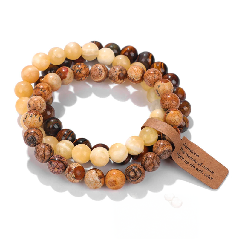 Tragen Sie diese Armbänder aus Tigerauge, Jaspis und Jade, um den ganzen Tag von ihren heilenden Eigenschaften zu profitieren. Sie können während der Meditation, bei Yoga-Sitzungen oder einfach als stilvolles Accessoire getragen werden, um ein optimales Energiegleichgewicht aufrechtzuerhalten.