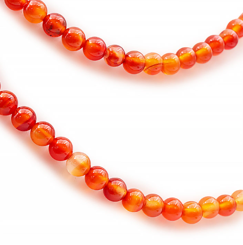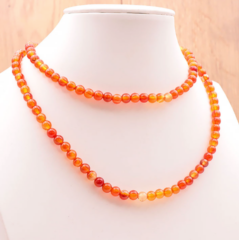 Diese Halskette besteht aus 6 mm großen, runden Karneolperlen der Güteklasse A und offenbart die ganze Fülle ihrer warmen Farbtöne. Jede Perle weist leichte Farbunterschiede auf, die den einzigartigen Charakter des Natursteins unterstreichen.