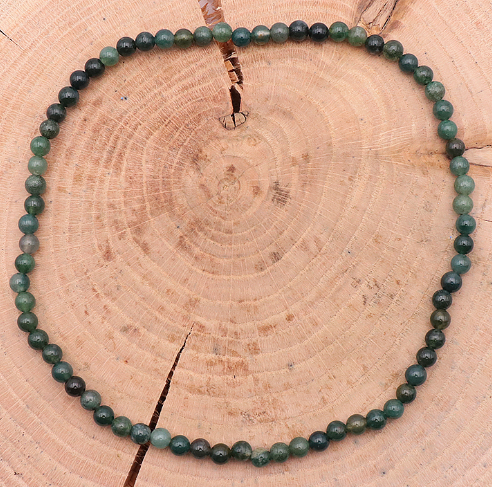 In der Kristallheilkunde wird Moosachat oft mit Harmonie mit der Natur, persönlichem Wachstum und emotionalem Gleichgewicht in Verbindung gebracht. Diese Halskette ist somit ein Schmuckstück, das ebenso ästhetisch ansprechend wie symbolträchtig ist und Ruhe, Erdung und Gelassenheit ausstrahlt.