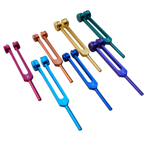 Diese Stimmgabeln sind leistungsstarke Klangtherapie- Werkzeuge, die bei der Meditation, Energietherapie und Schwingungsheilung eingesetzt werden, um Blockaden zu lösen, Stress abzubauen und einen reibungslosen Fluss der Lebensenergie im Körper wiederherzustellen.