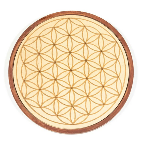 • Gittermaterial : Holz mit eingraviertem Motiv „Blume des Lebens“