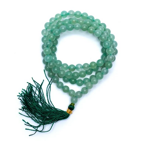 - Mala 108 Perlen aus natürlichem grünem Aventurin, Qualität AA