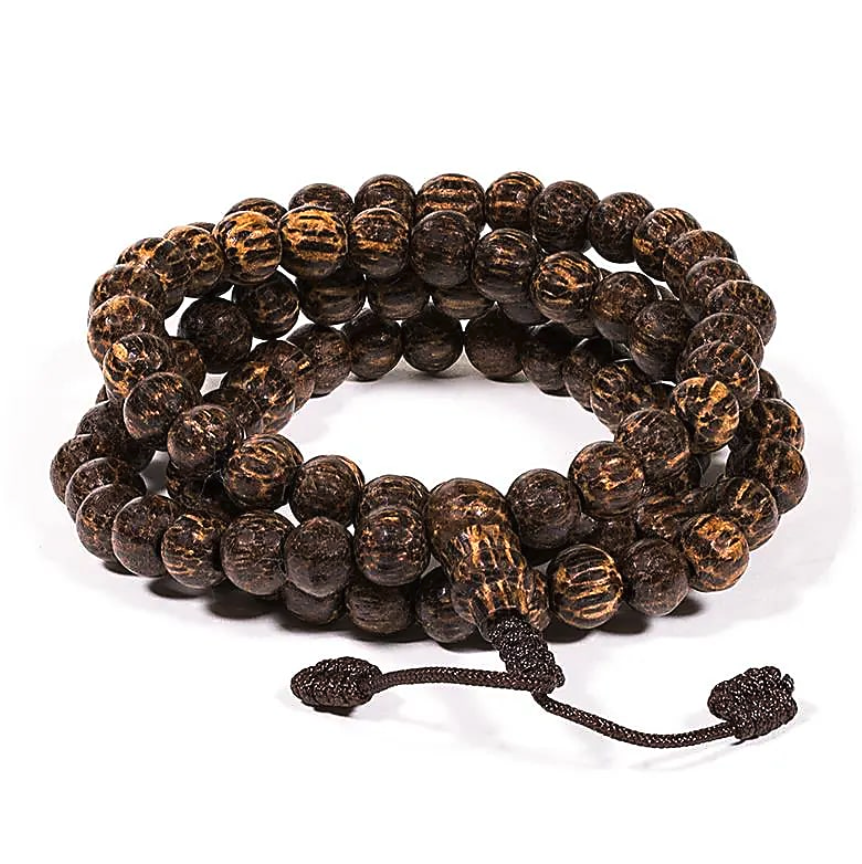Die Mala ist ein traditioneller Rosenkranz aus buddhistischen und hinduistischen Ritualen. Sie besteht aus 108 Perlen, die die 108 Prüfungen Buddhas oder die 108 heiligen Namen von Gottheiten repräsentieren. Sie wird zum Rezitieren von Mantras , zur Konzentration , Meditation oder zum Formulieren von Absichten verwendet.