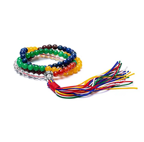 Die Mala mit 108 Perlen kann als Schmuck getragen werden, um Sie an Ihre spirituelle Reise zu erinnern und von den Vorzügen jedes Steins zu profitieren.