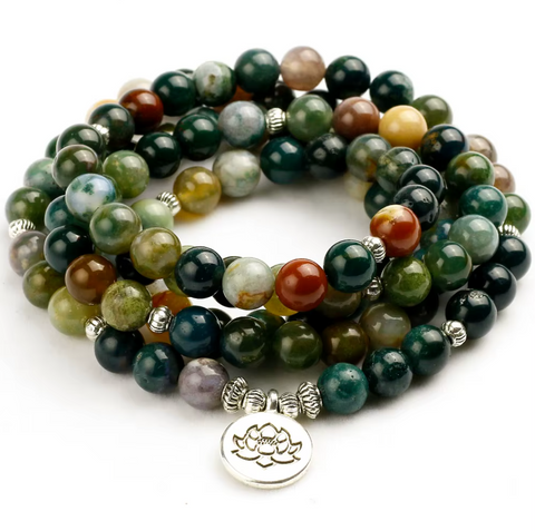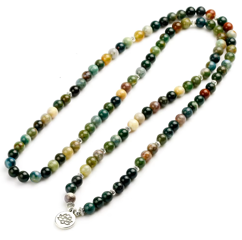 - Mala 108 Perlen aus Halbedelsteinen: Fancy Jasper, auch Indischer Jaspis oder Regenbogenjaspis genannt