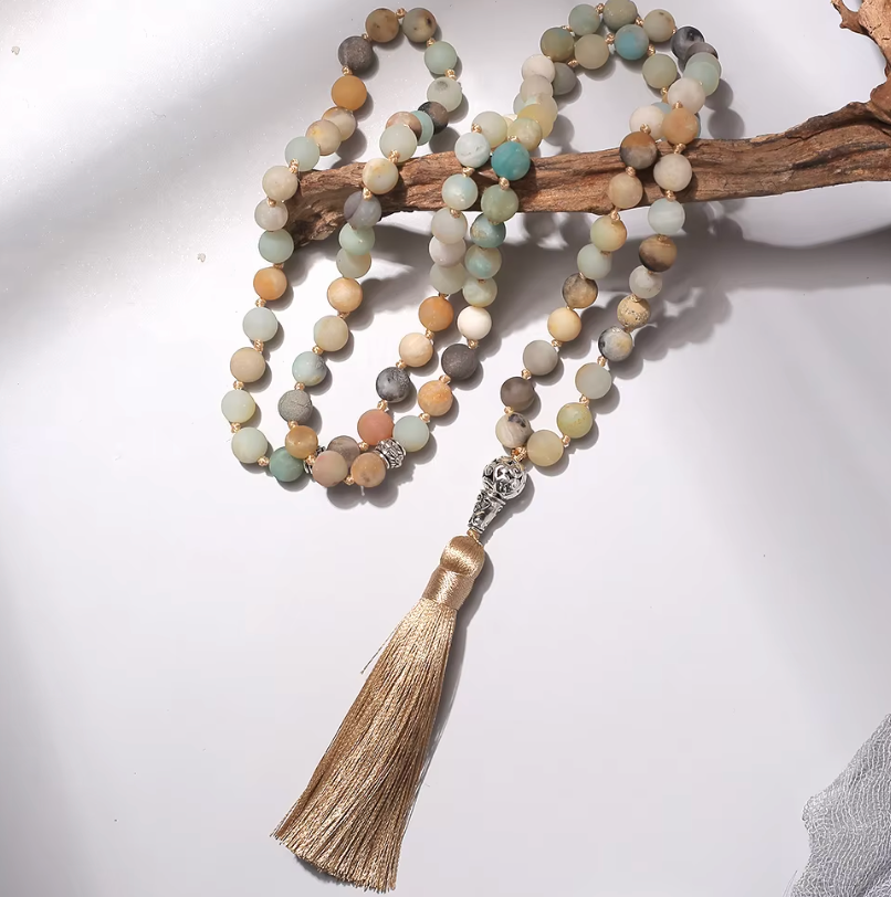 Symbolik der 108 Perlen: Die Zahl 108 hat in vielen spirituellen Traditionen eine große symbolische Bedeutung. Sie wird mit verschiedenen kosmologischen, philosophischen und religiösen Bedeutungen in Verbindung gebracht. Im Buddhismus beispielsweise repräsentieren die 108 Perlen der Mala die 108 menschlichen Leidenschaften, die überwunden werden müssen, um Erleuchtung zu erlangen.
