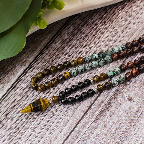 Sichere SSL-ZahlungDiese exquisite Mala ist aus Tigerauge und afrikanischen Türkisperlen gefertigt und soll Ihrer spirituellen Praxis Schutz und Klarheit verleihen. Perfekt für die Meditation, das Rezitieren von Mantras oder als spirituelles Schmuckstück. Diese Mala ist nicht nur ein Meditationswerkzeug, sondern auch ein stilvolles Accessoire für den Alltag.