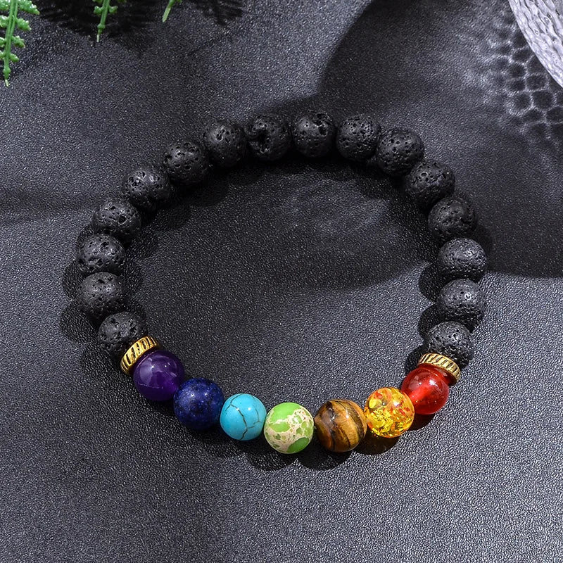 Verwenden Sie diese 7-Chakra-Lavastein-Mala in Ihren Meditationsübungen, um Ihre Chakren auszugleichen und auszurichten und so ganzheitliche Gesundheit und Wohlbefinden zu fördern. Wiederholen Sie ein chakraspezifisches Mantra, während Sie mit Ihren Fingern über die Mala-Perlen streichen, für eine tiefe und bedeutungsvolle Meditation.