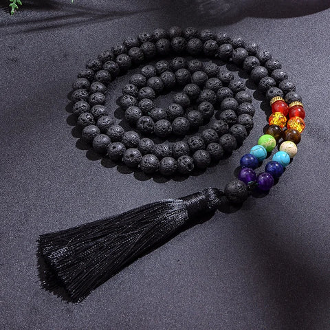 - Mala aus 108 Perlen aus Lavastein und Perlen