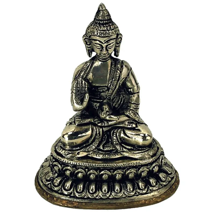 Buddha Amogasiddhi gilt als Buddha der aktiven Weisheit und der vollkommenen Erkenntnis. Er wird oft mit einer Hand in einer schützenden Geste (Abhaya Mudra) dargestellt, die das Vertreiben von Ängsten und Zweifeln symbolisiert. Amogasiddhi wird mit dem Element Luft und der Himmelsrichtung Norden in Verbindung gebracht und hilft, spirituelle Hindernisse zu überwinden und fördert Mut, Erfolg und inneren Frieden.