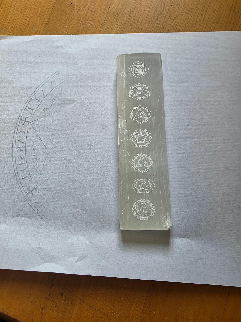 Selenit ist ein Stein mit hoher Schwingung. Es ist bekannt für seine Fähigkeit, stagnierende Energien zu reinigen und umliegende Kristalle wieder aufzuladen. In Verbindung mit Frieden und geistiger Klarheit trägt es zur Steigerung des spirituellen Bewusstseins bei und fördert tiefe Entspannung.