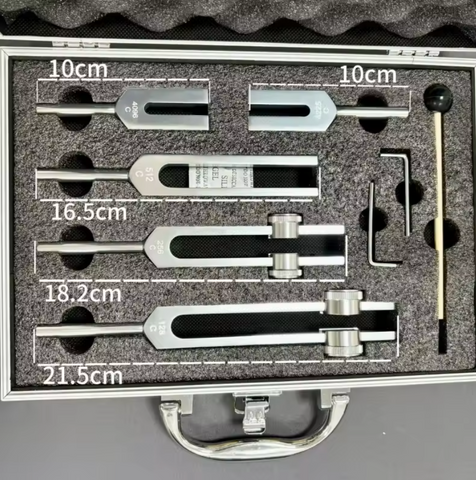 - 3 Stimmgabeln: Frequenz 128 Hz - C, 256 Hz - C und 512 Hz - C