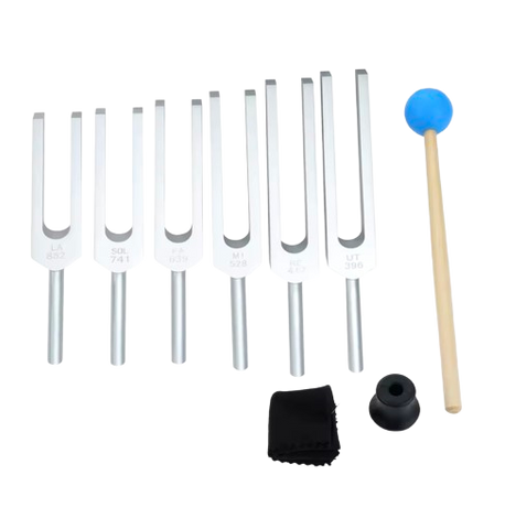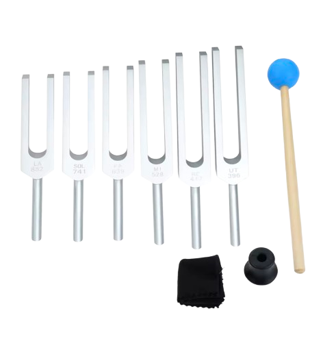 Entdecken Sie die Kraft therapeutischer Klänge mit diesem kompletten Set aus 3 Stimmgabeln, die auf die natürlichen Frequenzen des Körpers und des Universums gestimmt sind . Dieses Set enthält die Frequenzen 128 Hz, 256 Hz und 512 Hz , grundlegende Frequenzen, die in der Klangtherapie, Energieheilung und Wellness-Praktiken verwendet werden.