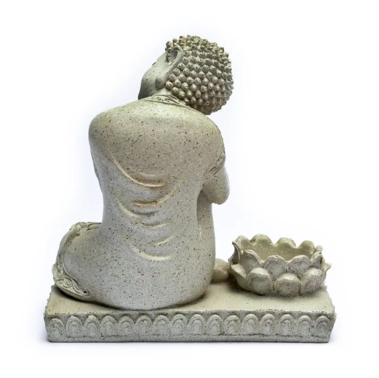 - Eine wohltuende Atmosphäre : Die entspannende Buddha-Haltung in Kombination mit dem sanften Licht einer Kerze ruft Gelassenheit hervor und lädt zur Ruhe ein.