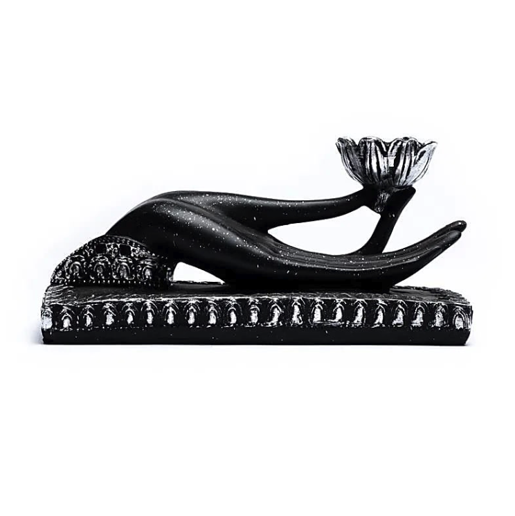 - Elegant und symbolträchtig : Das raffinierte Design des Mudra-Kerzenhalters macht ihn zu einem subtilen und raffinierten Dekorationsobjekt, das jedes Interieur verschönern kann.