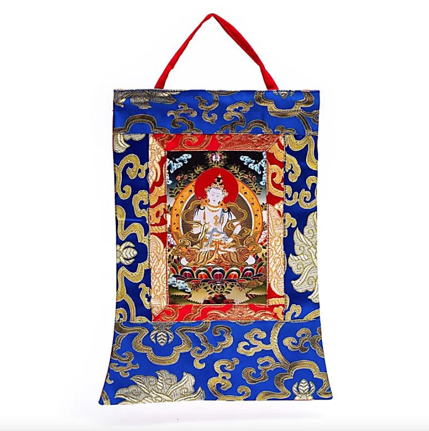 Ein Thangka ist ein heiliges buddhistisches Gemälde oder ein Druck, oft auf einem bestickten Seidentuch montiert. Traditionell wird es von Anhängern des tibetischen Buddhismus verwendet und dient dazu: